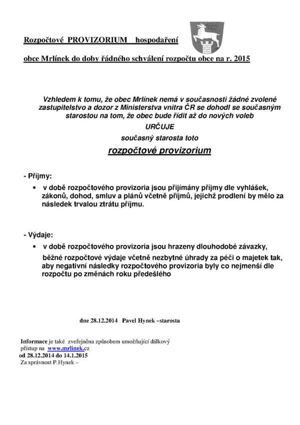 Rozpočtové provizorium na r.2015