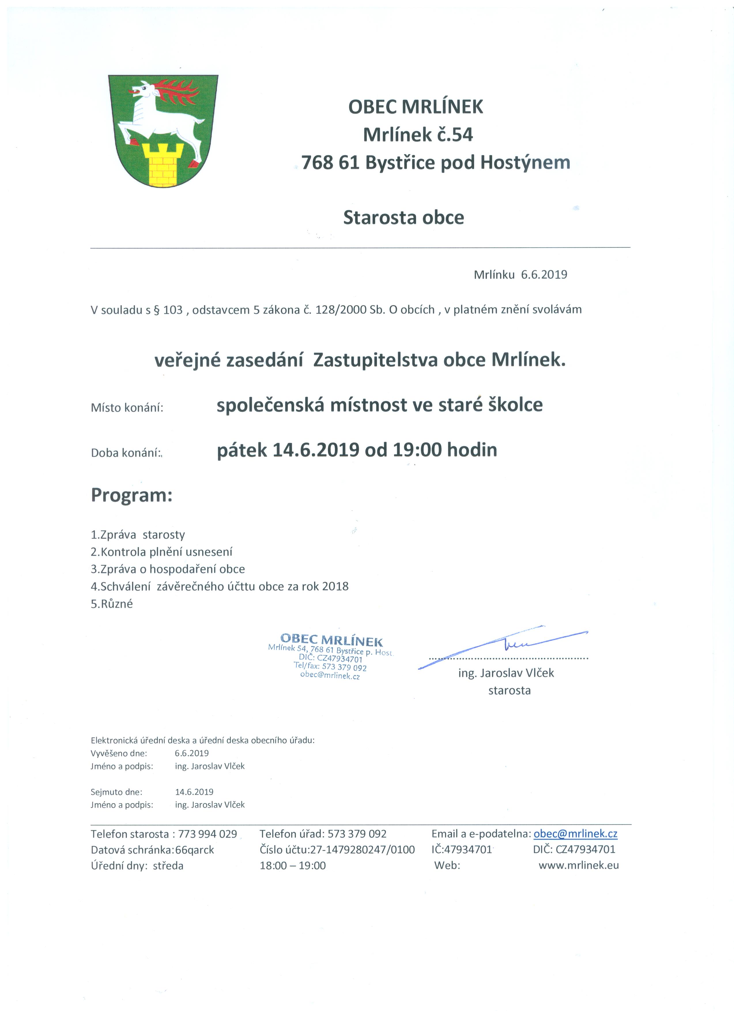 Pozvánka na OZ 14.6.2019