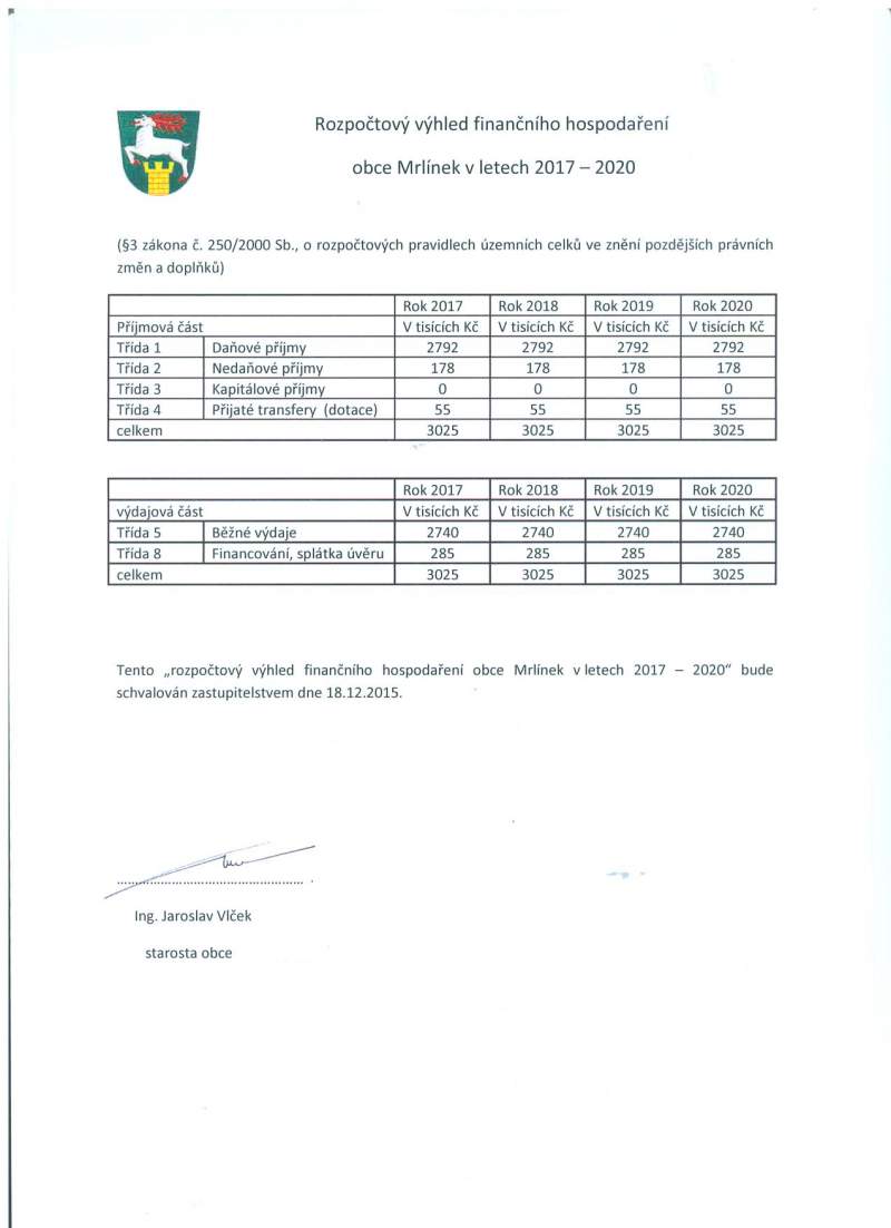 Rozpočtový výhled na roky 2017-2020