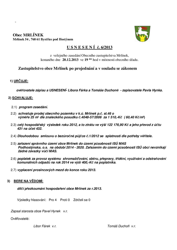 Zápis a usnesení č.6/2013